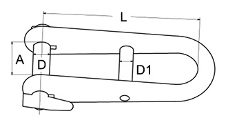 Durable long double bar D shackles with a locking pin for extra security in lifting, rigging and marine applications.